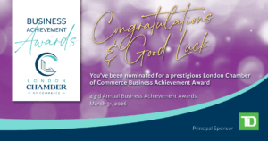 This year’s BAA nominees reflect the best of London, Ontario: a diverse group of leaders and organizations driving growth, building strong workplace cultures, and creating meaningful impact across our community. AGRIBUSINESS AWARD Advantage Farm Equipment ALLUKRA Ukrainian Pierogies Arrowwood Farm BioFerScience – Animal Health Cafezia Crunican Orchards Western Fair – The Grove BUSINESS OF THE…
